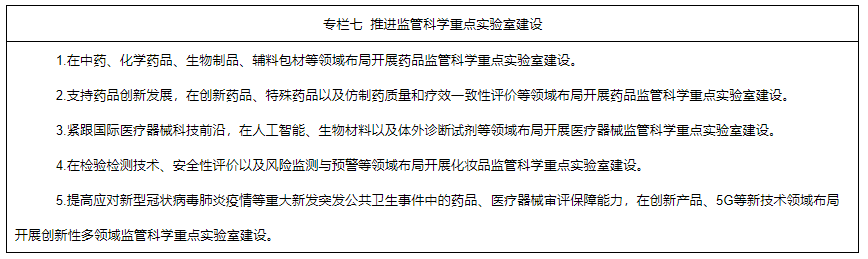 6.深入實(shí)施中國(guó)藥品監(jiān)管科學(xué)行動(dòng)計(jì)劃。統(tǒng)籌推進(jìn)監(jiān)管科學(xué)研究基地和重點(diǎn)實(shí)驗(yàn)室建設(shè),開展監(jiān)管科學(xué)等研究。將藥品監(jiān)管科學(xué)研究納入國(guó)家相關(guān)科技計(jì)劃,重點(diǎn)支持中藥、疫苗、基因藥物、細(xì)胞藥物、人工智能醫(yī)療器械、醫(yī)療器械新材料、化妝品新原料等領(lǐng)域的監(jiān)管科學(xué)研究,加快新產(chǎn)品研發(fā)上市。支持國(guó)家審評(píng)、檢驗(yàn)、評(píng)價(jià)、核查等機(jī)構(gòu)參與國(guó)家相關(guān)科技項(xiàng)目,鼓勵(lì)開展藥品快速檢測(cè)新技術(shù)、藥品研發(fā)生產(chǎn)及質(zhì)量控制等研究,開展數(shù)字診療裝備、個(gè)體化診療產(chǎn)品、生物醫(yī)用材料的質(zhì)量評(píng)價(jià)、檢測(cè)技術(shù)及檢測(cè)規(guī)范等研究,開展化學(xué)藥品、疫苗、新型藥物和特殊藥物劑型等安全性、有效性評(píng)價(jià)技術(shù)以及創(chuàng)新醫(yī)療器械標(biāo)準(zhǔn)體系研究。鼓勵(lì)運(yùn)用現(xiàn)代科學(xué)技術(shù),結(jié)合我國(guó)傳統(tǒng)優(yōu)勢(shì)項(xiàng)目和特色植物資源,加強(qiáng)化妝品新原料研究。